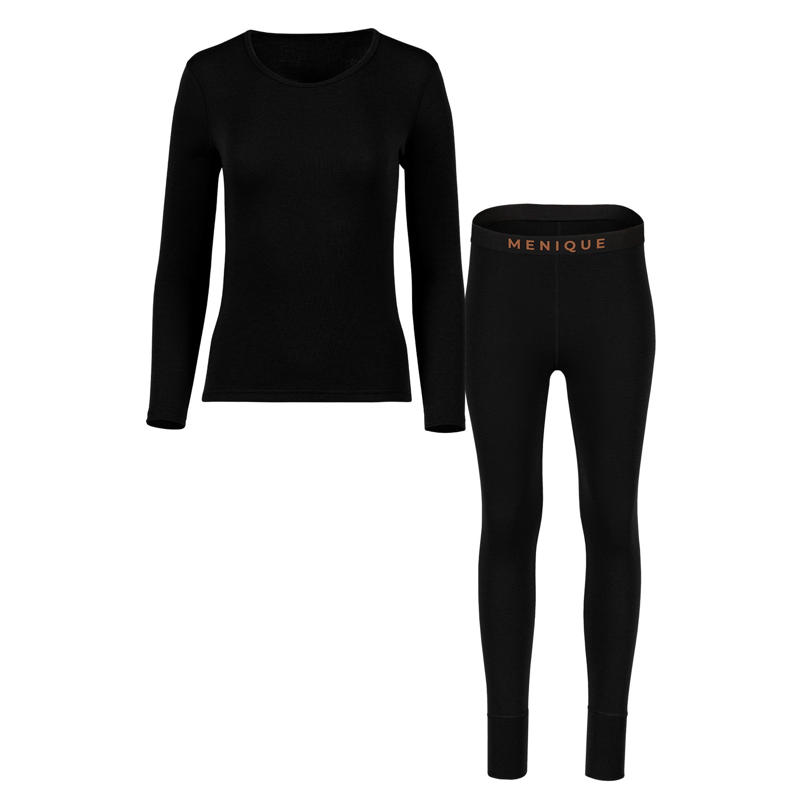 Conjunto de 2 piezas para mujer de merino 250: camiseta de manga larga y pantalones en negro