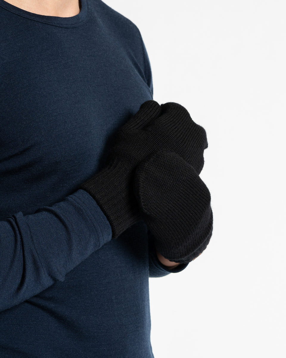 Keep your hands warm with our knitted Merino wool mittens for men. Made from high-quality 100% Merino wool for cold-weather comfort, these men's gloves offer versatile and long-lasting wear. Naturally thermoregulating, moisture-wicking, and breathable, Merino gloves keep your hands comfortably warm without overheating. The dense knit structure provides excellent insulation and wind resistance, while the soft, hypoallergenic wool ensures a gentle feel against the skin. Lightweight and odor-resistant, these men's mittens are perfect for daily commutes, winter walks, and outdoor sport in cold weather.
