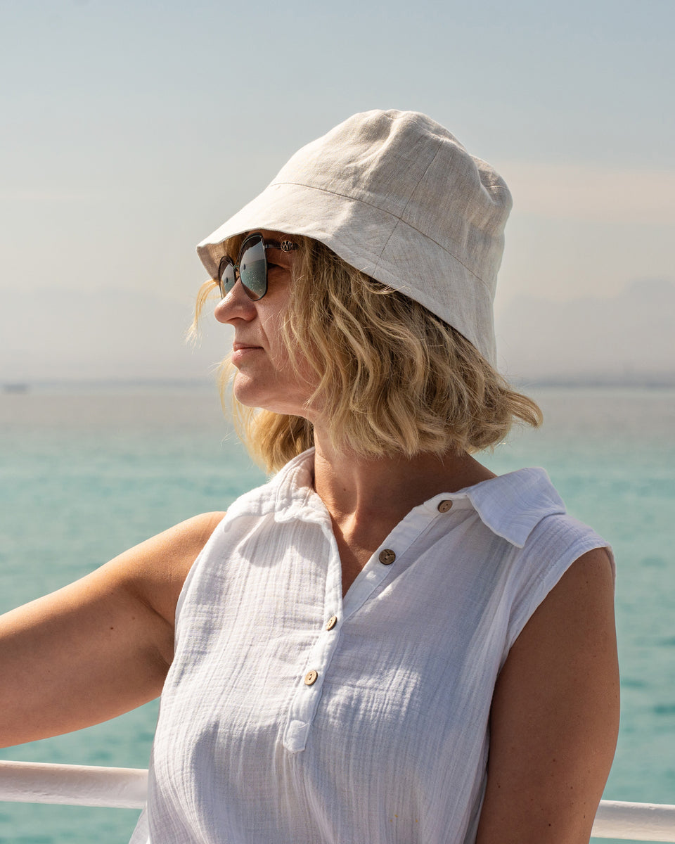 Sustainable and organic Linen bucket hat, designed with your comfort in mind. Crafted from high-quality, breathable linen, it's an ideal summer hat for women. No irritation, no sweating – just easy-wearing style. Elevate your look with a hat that feels as good as it looks. Pair it with a flowy Linen sundress or your favorite swimsuit for a trendy coastal vibe.