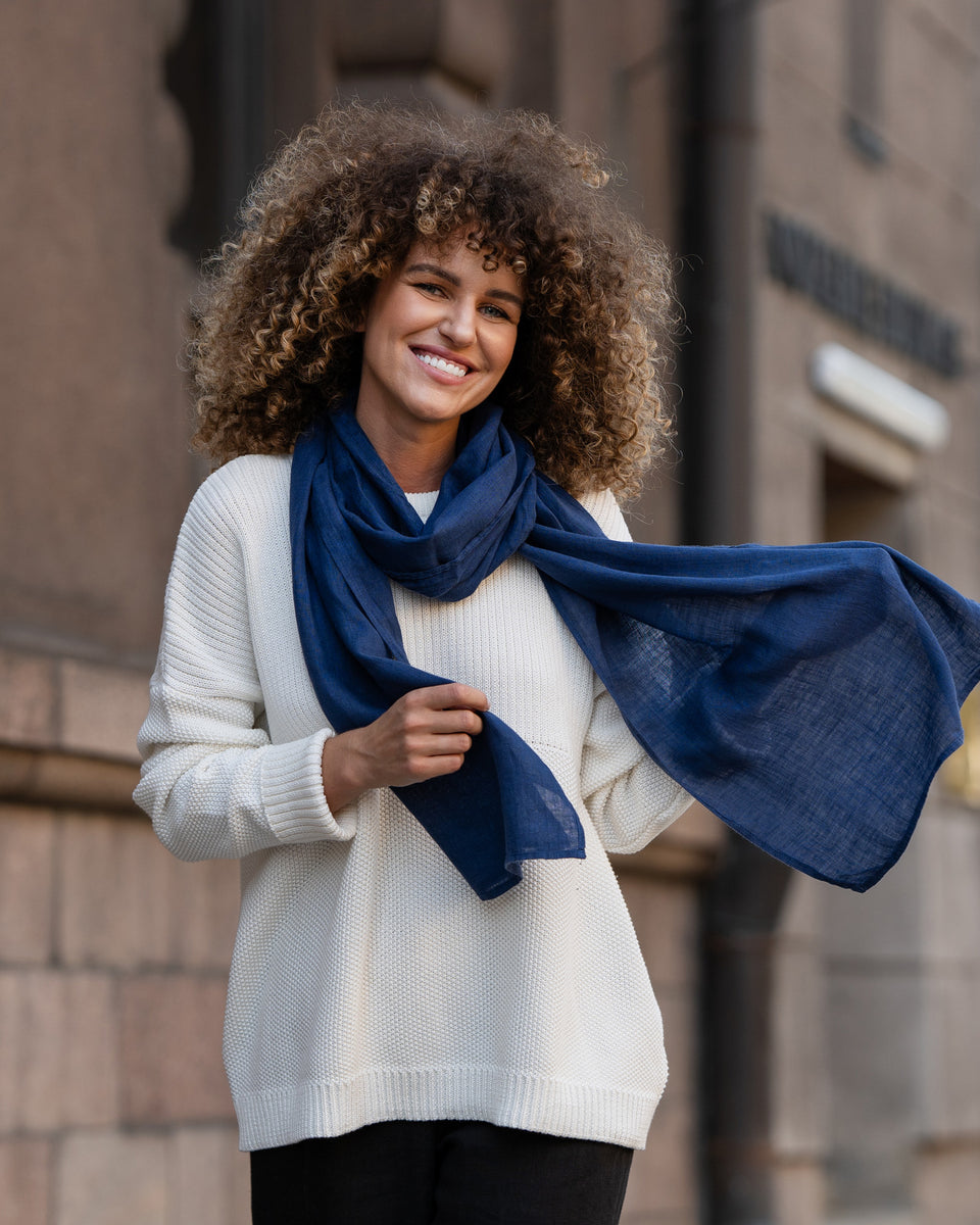 Did you know that linen scarves are the perfect accessory for shielding yourself from the sun? Our women's scarf is crafted from 100% organic, certified linen, ensuring unmatched comfort and functionality. Naturally hypoallergenic and breathable, this unisex scarf is gentle on the skin and keeps you cool even on the hottest days. Available in a variety of colors to complement your personal style.