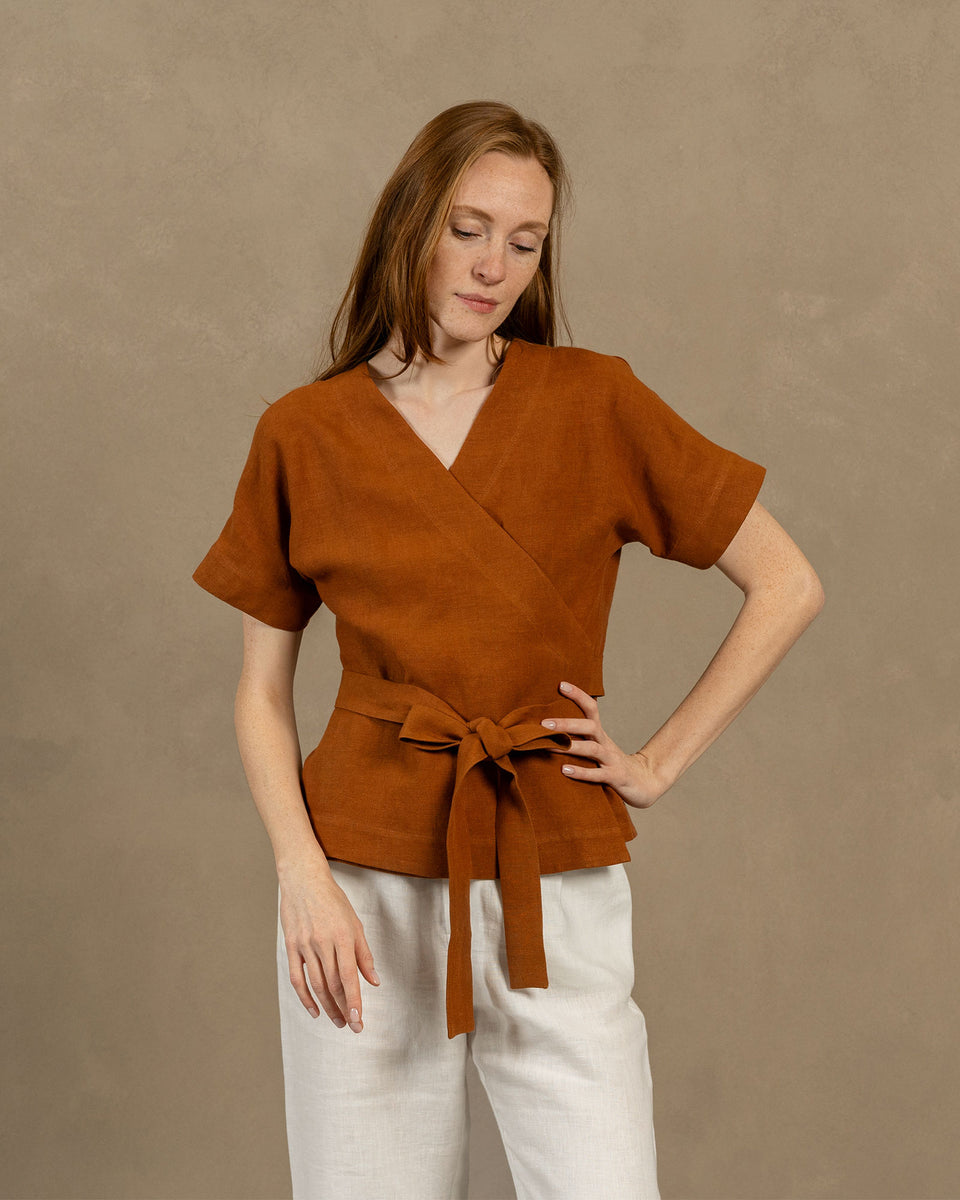 Sumérgete en la comodidad y la elegancia con nuestra blusa cruzada de lino con escote en v Lila. Confeccionada con lino 100% natural, nuestra prenda prioriza la transpirabilidad y la durabilidad, asegurando además propiedades hipoalergénicas. El diseño cruzado de esta blusa tipo kimono de lino ofrece infinitas posibilidades de estilo, convirtiéndola en una elección perfecta para cualquier ocasión. Eleva tu guardarropa con esta versátil blusa cruzada de manga corta.